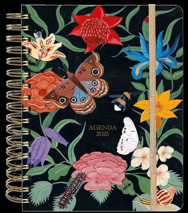 La gran agenda de Brianda para 2025 está llena de belleza y compromiso con el medio ambiente.Los pinceles de la artista Brianda Fitz-James han dibujado los bichos más espectaculares que puedas imaginar: mariposas, escarabajos, libélulas, saltamontes… Un desfile de pequeños animales imprescindibles para el correcto funcionamiento de los ecosistemas, aunque, tristemente, muchos de ellos amenazados por la actividad humana. Esta cautivadora agenda, de gran formato y con una preciosa cubierta forrada en tela, te ayudará a organizar tu vida y a mantener tus compromisos al día. Además de disponer de amplios espacios para anotaciones, te ofrece un bolsillo doble para guardar tus cosas y seis páginas de adhesivos tan bonitos que podrás usarlos para decorar tus regalos, tu ordenador o la propia agenda. Características: Formato: 19 x 24 cm. 176 páginas. 6 páginas de adhesivos. Bolsillo doble. Goma de cierre. Pestañas plastificadas. Esquinas redondeadas. Cinta marcapáginas. Tapa dura. Wire-o.