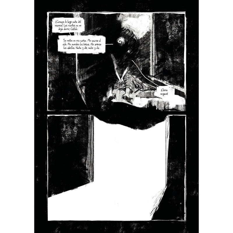 En una habitación sin ventanas, de una quinta abandonada, un hombre conversa con el asesino de su familia, antes de degollarlo, una plática de dolor, muerte y resurrección. Versión evolucionada de la obra finalista a mejor fanzine en el Salón del Cómic de Barcelona, que ahora alcanza un nuevo esplendor en esta edición de lujo, mejorada y revisada. Una obra adulta, experimental, oscura en lo estético y brillante en lo artístico.