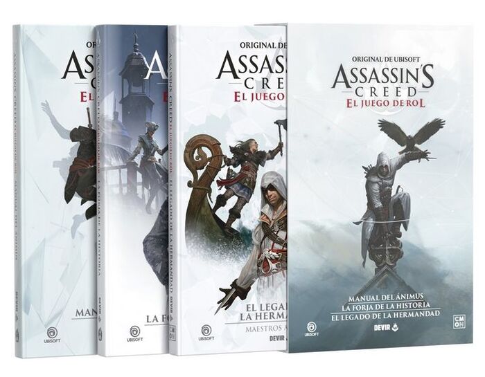 Basado en una de las sagas de videojuegos más exitosas de todos los tiempos, el juego de rol oficial de Assassins Creed traslada al papel la intensidad, el misterio y la acción de esta emblemática franquicia. Desarrollado por CMON y creado por diseñadores como Max Castellani, Andrea Macchi y Francesco Nepitello, llegará este septiembre en castellano gracias a Devir. Esta edición incluye tres libros Manual del Ánimus, La forja de la historia y El legado de la Hermandad acompañados por una slipcase exclusiva que reúne y protege toda la colección.