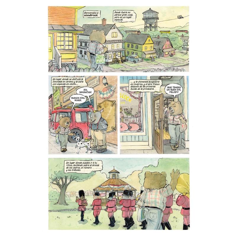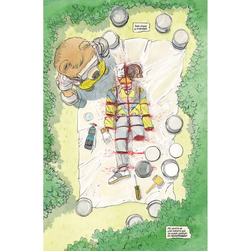 Samantha Strong, adorable osa parda, ciudadana ejemplar y asesina en serie del pueblo de ensueño Woodbrook solo tiene una norma: no asesines a tus vecinos . Al fin y al cabo, hay un montón de posibles víctimas en la ciudad al otro lado del bosque, y cuando te has esforzado tanto como Sam por conseguir una vida acogedora y un negocio próspero, rodeada de amables vecinos animales y del aroma de los cedros y las tartas de manzana, lo último que te interesa es perturbar la paz. Así que, cuando un habitante de Woodbrook es asesinado brutalmente, Sam se ve obligada a hacer todo lo posible para encontrar a su rival antes de que el número de víctimas aumente y el sheriff Patterson empiece a ladrar (literalmente) a quien no debe. Bajo los árboles, donde nadie te ve es el debut del guionista y cineasta Patrick Horvath, nominado al premio Eisner 2024 a Mejor serie nueva. Horvath ha demostrado con esta obra una habilidad admirable para acoplar las escenas más macabras con una estética propia de las fábulas infantiles. El guion, dotado de ironía y sentido del humor, permite profundizar en la esencia de la condición humana a través de sus diferentes capas. Mientras tanto, el dibujo reconforta y se siente como una manta en pleno invierno. En una época en que los cozy crimes están copando las librerías, este es el tipo de cómic que apetece leer junto a la chimenea. Nada te puede preparar para esto. Si te gusta El viento en los sauces pero odias a tu niño interior Bajo los árboles, donde nadie te ve es para ti . Tony Fellecs, Stray Dogs