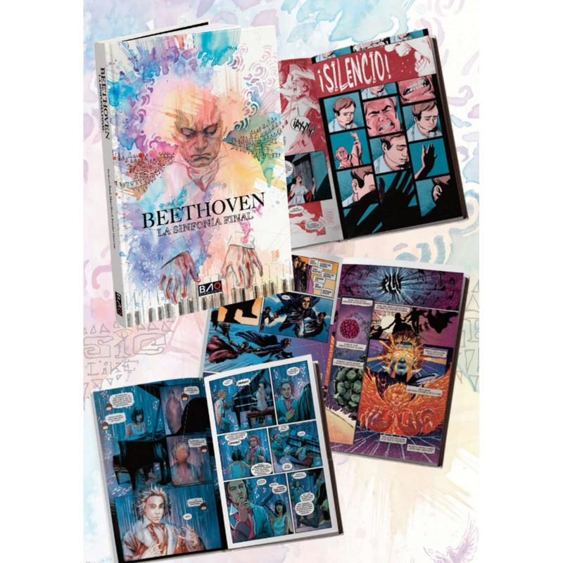 Cumplidos los 250 años de su nacimiento, ¿por qué sigue Beethoven estando tan vivo y tan de actualidad? En palabras del propio Beethoven ôEl Arte exige que no nos quedemos quietosö, motivo por el que seguimos celebrando su inconmensurable genio -cercanos a conmemorarse los 200 años del estreno en directo de la Novena Sinfonía- con la edición en castellano de la novela gráfica Beethoven. La sinfonía final.