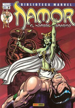 ¿Quién es Betty Dean? La que pudo haber sido la mujer más importante en la vida del Príncipe Submarino ha vuelto, y su dramática historia te conmoverá como pocas, mientras te deleitas con el combate entre Namor y la Cosa. Y no pierdas ni un minuto para tomar el aliento, porque a continuación se libra la guerra por la Corona de la Serpiente... ¡Un conflicto que estalla en las manos de Namor, coincidiendo con la llegada a la colección de la excepcional Marie Severin! Este volumen de Biblioteca Marvel comienza con la resolución de la Saga del Destino. En ella, Roy Thomas nos muestra la debacle de un hombre que se creía omnipotente. Y, justo a continuación, Namor se enfrenta una vez más con La Cosa, el mítico componente de Los 4 Fantásticos. Pero el aspecto más importante de este tomo radica en un elemento diabólico que ha estado presente desde el nº 4 de esta colección. Se trata del Casco de Poder, un objeto que revelará su verdadera forma, lo cual provocará una crisis en el seno de Atlantis. Asimismo es importante destacar que en este volumen de BM: Namor incluye comics dibujados por tres artistas realmente excepcionales: John Buscama, Marie Severin y Gene Colan (quien volverá temporalmente).