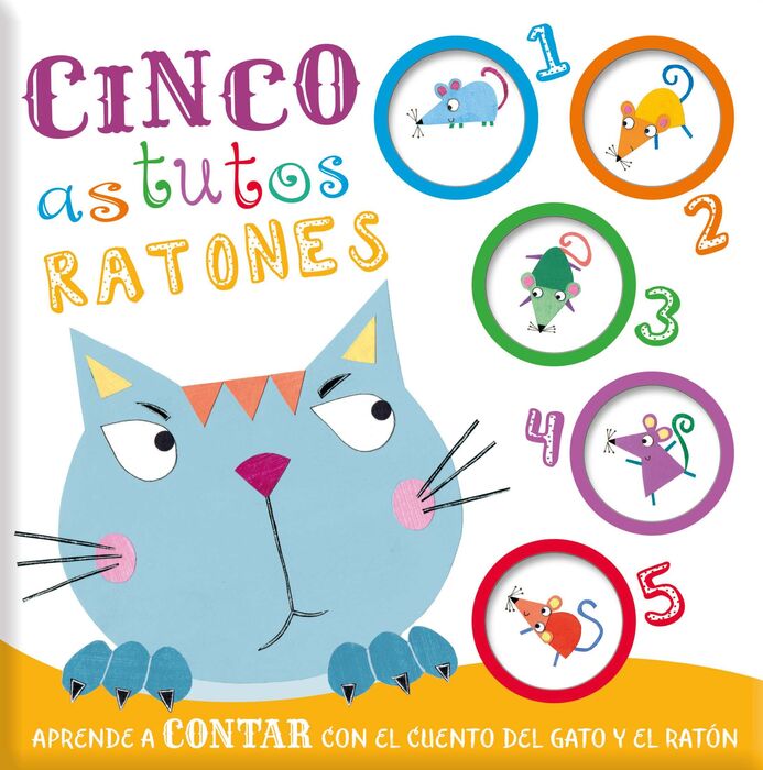 Ayuda a e stos cinco astutos ratones a vencer al gato y conseguir el queso, con formas escondidas para contar en cada página. Un formato de libro nuevo y divertido, con formas troqueladas, para aprender a contar hasta 5.