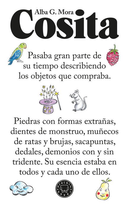 Una mujer huérfana llamada Cosita, obsesionada con coleccionar objetos. Un mago ladrón. Una novela donde lo raro y lo bello brillan como dos caras de la misma moneda. Tras la muerte de sus padres, Cosita, una mujer que colecciona objetos de segunda mano de forma compulsiva, empieza a temer por la estabilidad de su mundo al darse cuenta de que le ha salido un enemigo: un mago que empieza a comprar los objetos que ella más desea. Una novela que funciona como misterio por resolver y estudio de personaje, con un tono y una propuesta cercanos a Piranesi, de Susanna Clarke, y unas vibraciones lynchianas que recorren toda la trama de principio a fin.