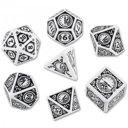 DADOS Q-WORKSHOP SET DE 7: WHITE / BLACK STEAMPUNK CLOCKWORK