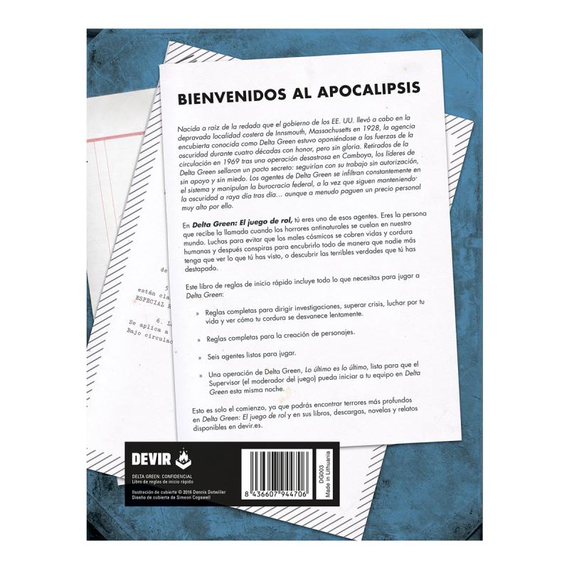 Nacida a raíz de la redada que el gobierno de los EE. UU. llevó a cabo en la depravada localidad costera de Innsmouth, Massachusetts en 1928, la agencia encubierta conocida como Delta Green estuvo oponiéndose a las fuerzas de la oscuridad durante cuatro décadas con honor, pero sin gloria. Retirados de la circulación en 1969 tras una operación desastrosa en Camboya, los líderes de Delta Green sellaron un pacto secreto: seguirían con su trabajo sin autorización, sin apoyo y sin miedo. Los agentes de Delta Green se infiltran constantemente en el sistema y manipulan la burocracia federal, a la vez que siguen manteniendo la oscuridad a raya día tras día