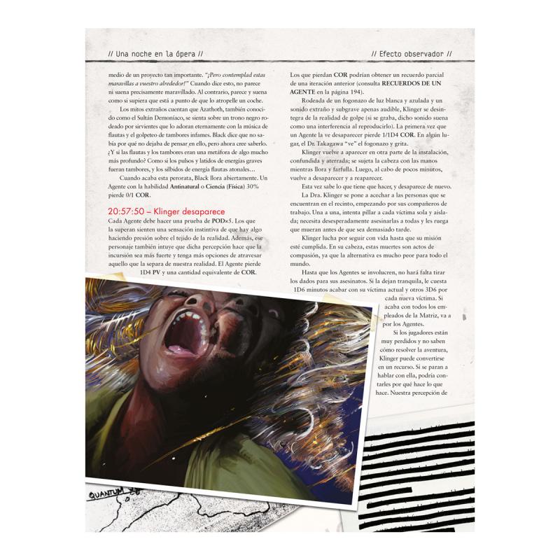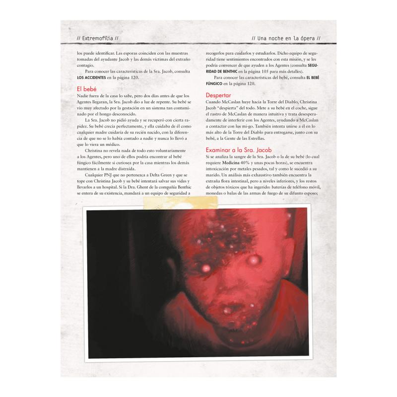 UNA NOCHE EN LA ÓPERA recopila seis operaciones de Delta Green (o Noches en la Ópera, que es como los agentes a veces se refieren a ellas). Cada uno de estos escenarios se sostiene por sí solo como un momento de terror.