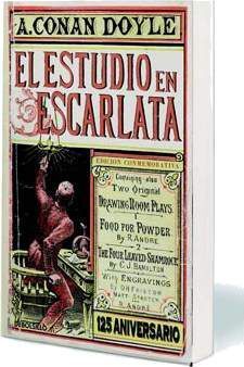 Conmemoramos los 125 años de la primera publicación de Estudio en escarlata con una edición muy especial en tapa dura que recupera la portada original. LA PUBLICACIÓN en 1887 de Estudio en escarlata significó la primera aparición del mítico detective Sherlock Holmes, uno de los más célebres investigadores de toda la historia de la literatura. A caballo entre el género policíaco, la reconstrucción histórica y el relato de aventuras, la novela es una explosiva mezcla de crimen, suspense, pistas falsas y venganzas donde Holmes, Watson y el Inspector Lestrade unirán sus fuerzas por primera vez para seguir el rastro de un misterioso asesino en las calles de Londres