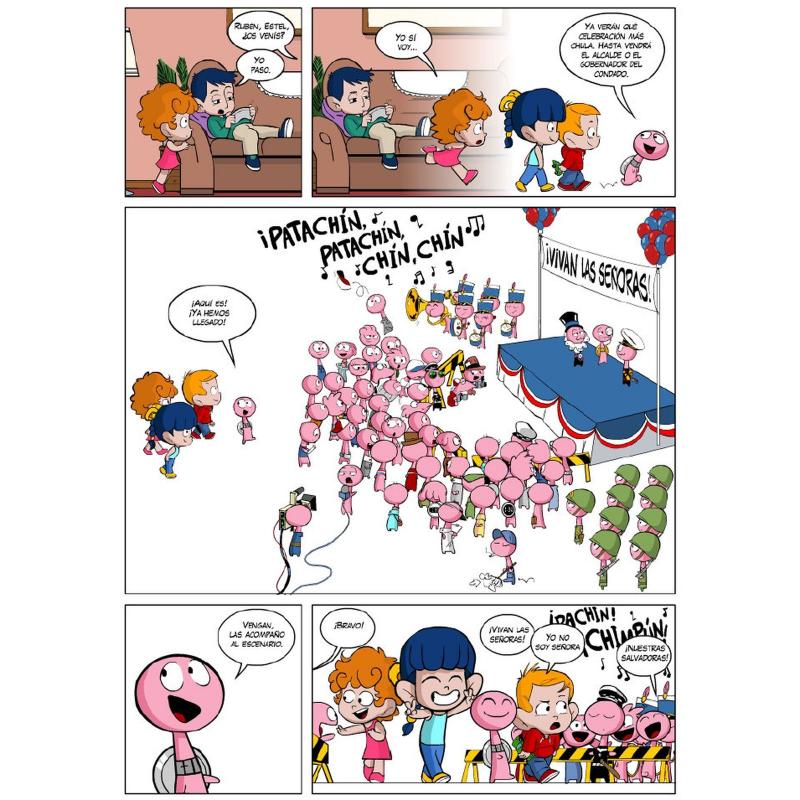 Hordas de bobos, vampiros pulisías, ladrones del Tesoro Son tiempos difíciles en el Condado de los gusis. Pero de la oscuridad surge una luz, un superhéroe misterioso que resolverá todos los problemas O quizás, no. ¡Todo esto y más en el Show In, el programa más visto de la televisión del Condado! Cuatro niños de distintas edades acceden a un mundo paralelo en el que viven unas criaturas que no pueden ser vistas por los adultos y a las que por error llaman gusis. Estas criaturas no los ven como niños, sino como señoras y les tratan como si fuesen adultos, lo que acarrea innumerables y divertidos equívocos. Los niños, creyendo que todo es un juego, vulneran sus leyes y crean conflictos, aunque también surgirá entre ellos un superhéroe que "ayudará" a los gusis en sus problemas. Los niños se ríen mucho con estos cómics, al mismo tiempo que aprenden que todas las acciones pueden tener consecuencias, incluso las que parecen muy divertidas al principio. Esta obra en particular anima a los lectores a dejar las pantallas y videojuegos.