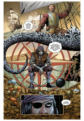 En pleno siglo XVI, un barco de exploradores marítimos descubre un mundo perdido gobernado por un único monarca El rey de los monstruos! Antes de que la humanidad lograra recorrer todo el planeta, se pensaba que los monstruos dominaban los océanos más allá del horizonte. En los mapas, se escribía la frase Hic sunt dracones ( Aquí hay dragones ) para señalar aquellas zonas que nadie se atrevía a transitar. Hasta que Sir Francis Drake circunnavegó el globo terráqueo, visitó tierras extranjeras y recolectó tesoros. Al menos, eso es lo que cuenta la historia. Pero la historia no transmitió un relato completo de lo sucedido Los monstruos acechaban aquellos parajes, habitando una isla que todavía no aparece en ningún mapa. Y entre ellos, se encontraba su rey Godzilla! Frank Tieri e Inaki Miranda combinan aventuras, acción, ucronía y terror en una obra nominada a los premios Eisner 2024 en las categorías de mejor serie limitada y mejor dibujante/entintador.