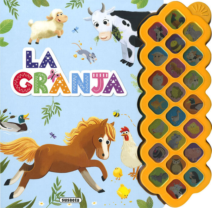 Busca los animales en las ilustraciones y pulsa los botones para escuchar su sonido. ¡Hay 22 diferentes! Podrás oír a la oveja, al burro, al caballo, al pato... ¡a todos los que conoces!