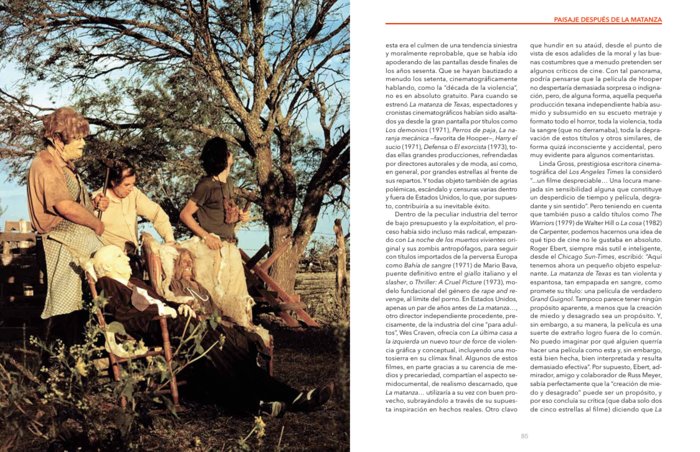 En el 50 aniversario del film La matanza de Texas, el libro analiza los diferentes aspectos de la película: Los hechos reales, la novela original. los actores y sus personajes, el rodaje... Todo ello acompañado por un gran despliegue fotográfico.