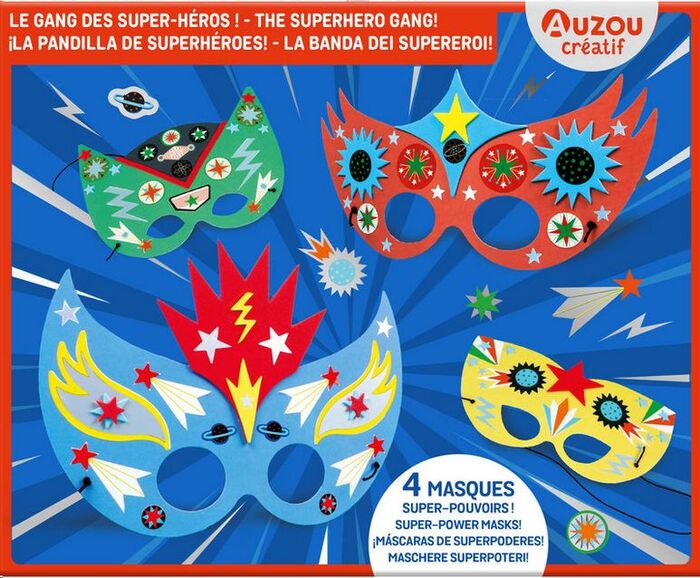 ¡Una magnífica carpeta para crear 4 máscaras de superhéroes! No todos los héroes llevan capa, ¡pero sí pueden llevar una máscara superchula! En este kit encontrarás 4 máscaras diferentes de superpoderes para decorar con pegatinas de colores, brillantes o de espuma. Usa este set para crear divertidas máscaras, ocultar tu identidad secreta y luego salvar la ciudad del mal. ¡Rápido, la gente te necesita! 4 máscaras para decorar con: - pegatinas de colores - pegatinas brillantes - pegatinas de espuma