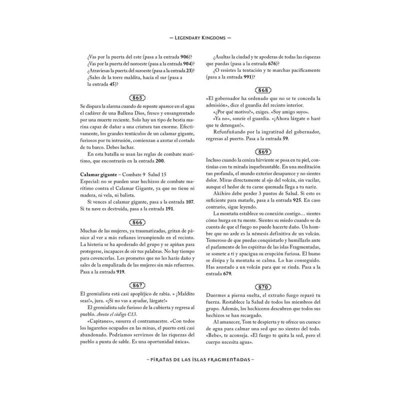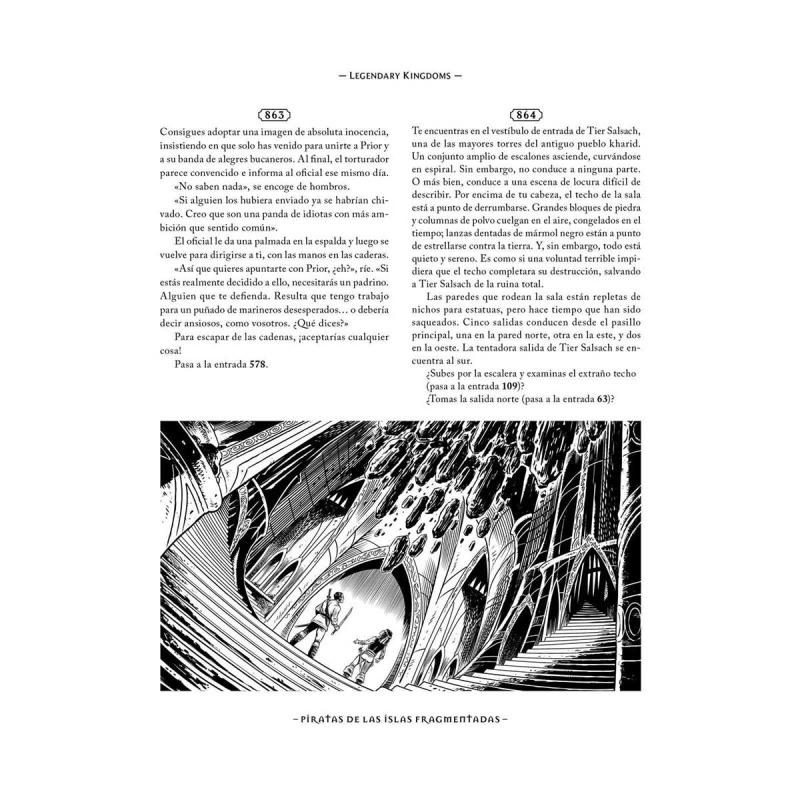 Legendary Kingdoms es un libro-juego de campaña, en el que diriges un grupo de aventureros en un mundo que se adapta a tus acciones. Tu grupo aumentará en habilidades, riqueza y renombre, lo que les permitirá emprender aventuras más exigentes. Libro 3: Piratas de las islas Fragmentadas está ambientado en un archipiélago tropical en el que abundan los bucaneros y los monstruos mortales.
