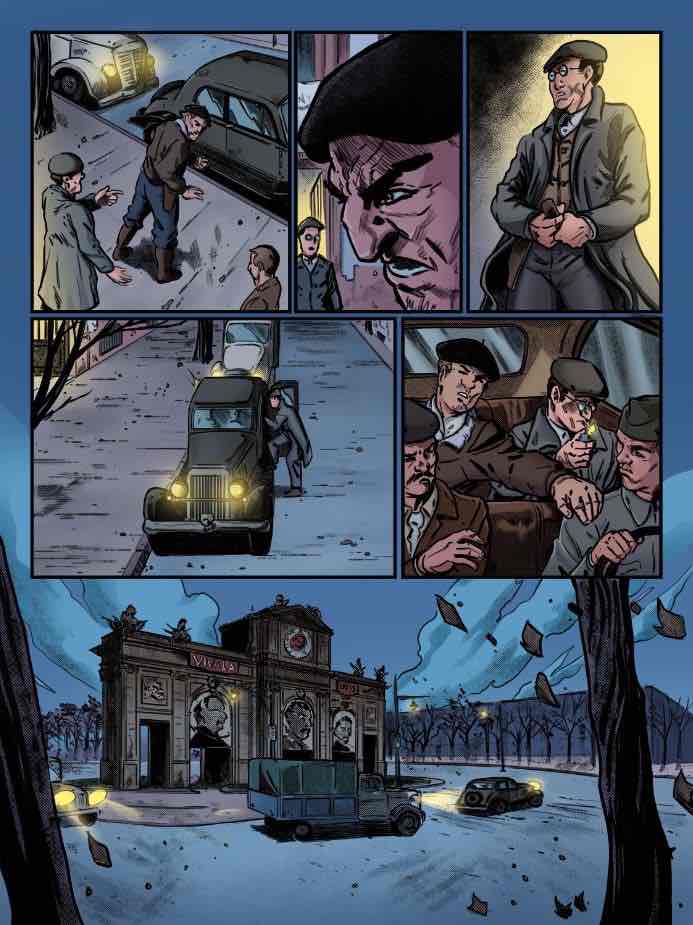1938. En plena Guerra Civil, Madrid recibe a diario los bombardeos de la aviación nacional. Las bombas hacen carne en la capital. La rabia crece en los corazones de los milicianos y el sabor metálico de la venganza se extiende por sus gargantas, que gritan al unísono: « Venganza!». Un odio que tiene como objetivo a los antiguos militares que son vistos como el enemigo, como la quinta columna que amenaza a la República. El cainismo español recorre las páginas de esta obra, personajes que muestran los sentimientos más primarios en el hombre. Ojo por ojo y diente por diente, muertos por muerte. Un grito de terror recorre las calles Masacre, masacre!