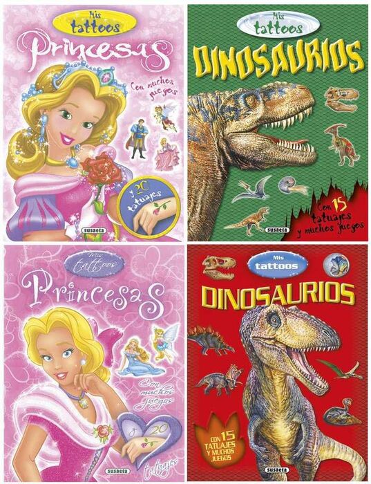¿Te gustan las princesas? ¿Y los dinosaurios? Sumérgete en su mundo y aprende muchas cosas nuevas con divertidos juegos y pasatiempos. Además, tienes fantásticos tatuajes para ponerlos donde tú quieras.