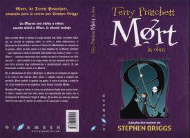 Pero cuando Mort se queda al cargo durante una noche, no puede evitar que su corazón se imponga sobre la razón y, como consecuencia, el Principio de Causalidad e incluso el futuro del Mundodisco se encuentran en peligro. Mort no sólo conoce a la hija adoptiva de la Muerte, Ysabell que conserva la edad de dieciséis años desde hace treinta y cinco, y a Albert sirviente misterioso cuya comida es capaz de fulminarte con sólo mirarla, sino también a un mago inepto con un picaporte parlante y a una bella princesa algo malhumorada y completamente muerta. Y, por descontado, también conoce a la Muerte. En el Mundodisco de Terry Pratchett, la Muerte es realmente un esqueleto de más de dos metros, viste túnica y capucha negras y empuña una guadaña. Pero también le gustan los gatos, el curry y cabalga a través de los cielos montado en un magnífico corcel blanco llamado Binky. Stephen Briggs se dedica al teatro no profesional desde hace más de treinta años y asegura que esta obra puede ser representada sin contar con el presupuesto de Industrial Light & Magic. Y no sólo eso, sino que además sobraría para que el reparto se pudiera ir de copas por la noche.