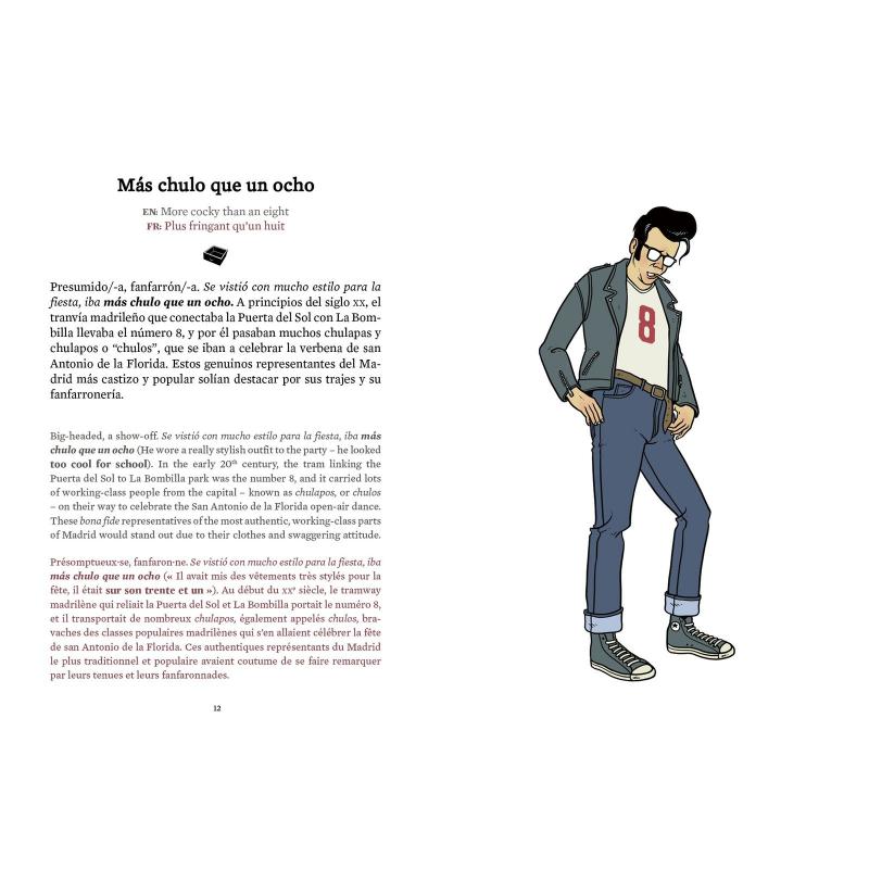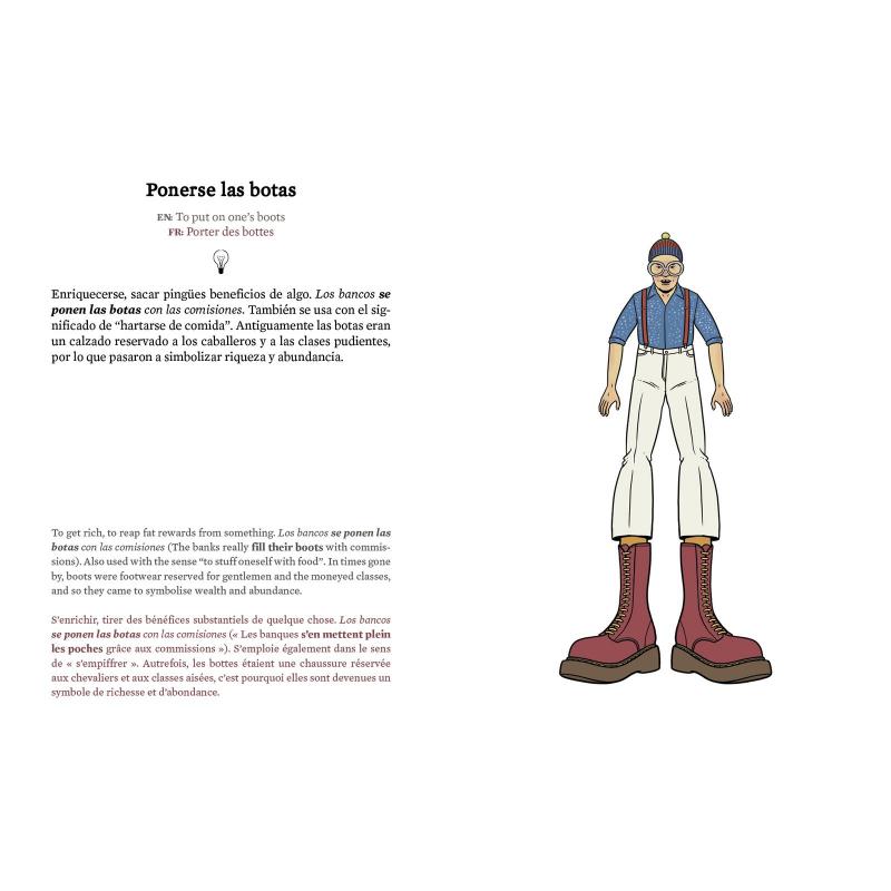 Meter la gamba, darle la vuelta al jamón, llevarse el gato al agua, mear fuera del tiesto... El castellano rebosa de esas expresiones populares cuyo significado no tiene mucho o nada que ver con las palabras que las forman, y que se estampan en la cabeza como postales de colores, vivas y crudas. Héloïse Guerrier y David Sánchez, los autores de Con dos huevos y Cagando leches (Astiberri, 2014 y 2015), que llevan vendidos más de 21.000 ejemplares, examinan con lupa una nueva remesa de locuciones sorprendentes, desternillantes o hirientes que a buen seguro le hubieran flipado a Teresa de Jesús. En el plano gráfico, cada expresión viene ilustrada de manera literal. De esta forma, estas locuciones del lenguaje coloquial, formadas por términos sencillos, muchas veces vinculados con el registro de la comida o de la sexualidad, adquieren una poesía visual inesperada. Descontextualizadas y tomadas al pie de la letra, se tornan surrealistas, absurdas, casi inquietantes. Además, los autores indagan en el origen del lenguaje. Cada locución es descuartizada a conciencia, en un intento de descifrar su etimología, su cómo y su porqué: cuál era el uso inicial de tal locución, en qué contexto se empleaba o cómo ha ido evolucionando a lo largo del tiempo. Una manera de descubrir un idioma y sus raíces a través de sus expresiones más coloquiales.
