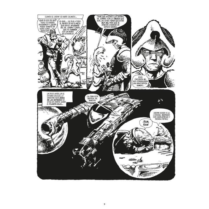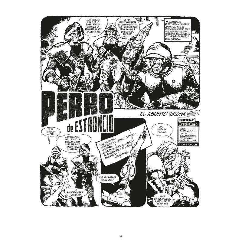 Regreso al planeta de los Gronks! El cazarrecompensas mutante Johnny Alpha y su compañero de aventuras Wulf Sternhammer recorren la galaxia ejecutando diversas misiones en las que impartir justicia... o con las que llenar sus bolsillos. Sus nuevas andanzas les llevarán al planeta natal de los Gronks para salvarles de unos Perros de Estroncio traicioneros o hasta el mundo de Nomi, donde descubrirán en persona el poder de la Isla de los Muertos Vivientes. Tras la ya histórica saga Retrato de un mutante, John Wagner (Una historia de violencia), Alan Grant (Juez Anderson: Shamballa) y Carlos Ezquerra (Juez Dredd) siguen al frente de las aventuras de Johnny Alpha. Este volumen continúa la recopilación cronológica de las aventuras originales de Perro de Estroncio, llegando hasta el ecuador de los años ochenta e incluyendo varias historias clásicas inéditas en España hasta la fecha. "Los relatos clásicos que forjan el carácter de una serie. Historias de los ochenta que nos traen la mezcla de géneros marca de la casa: crueles relatos de Far-Far West, acción sin tregua, ciencia ficción postapocalíptica y terror. Material de la época dorada de 2000 AD. Relatos de continuidad seriada, de grapa, para el lector fiel y/o desprejuiciado". Barsen Sánchez (Campamento Krypton, Atom Cómics)