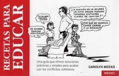 https://comicstores.es/libro/recetas-para-educar_177983177983RECETAS PARA EDUCARÉsta es una auténtica guía práctica para los superocupados padres de hoy. Ya sean sus hijos bebés o adolescentes, Recetas para Educar ofrece breves informaciones, alegres dibujos y listas sencillas, accesibles al instante, con consejos para cualquier comportamiento de su hijo. Escrita por una pediatra con más de quince años de experiencia, da soluciones a los problemas más comunes entre padres e hijos. Usted sabrá sus causas, cómo evitarlas y cómo suprimirlas de manera eficaz. https://comicstores.es/imagenes/9788486/978848619348.JPG17.5818.505.000.92CAROLYN MEEKS