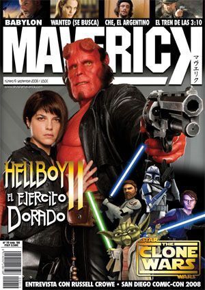 https://comicstores.es/libro/revista-maverick-019_6566165661REVISTA MAVERICK #019El chico rojo ha regresado. Hellboy II: El Ejército Dorado es nuestro plato fuerte para este mes. El mal ha aparecido de nuevo sobre la Tierra, y Hellboy y sus compañeros no pueden dejar pasar la oportunidad de demostrar de que pasta estan hechos. Así mismo, el retorno de la franquicia de Star Wars a los cines no podía pasar desapercibido, con lo que Clone Wars forma parte importante de este número. Destacamos también entre el resto de estrenos Viaje al Centro de la Tierra, Che, el Argentino, Wanted (Se Busca), El Tren de las 3:10, Los Extraños, Babylon y La Isla de Nim. Además hemos preparado monográficos sobre Benicio del Toro, Guillermo del Toro, Russell Crowe y Angelina Jolie. Nuestra sección de Dvds viene repleta con una buena remesa de lanzamientos: El Señor de los Anillos: Edición 5º Aniversario, Rambo, Las Crónicas de Spiderwick, La Noche es Nuestra, Pozos de Ambición, Casi 300 y Michael Clayton. Además no podeis perderos el resto de nuestros contenidos: Dimensión Fantástica, Cómics, Merchandising, con un especial de la San Diego Comic Con 2008, Manga y Anime, Series de Televisión, Videojuegos ... y mucho más, como por ejemplo una entrevista a Biggs Darklighter (Star Wars) o un especial sobre la presencia del personaje de Batman en los parques temáticos y de atracciones. ¿Os lo vais a perder? https://comicstores.es/imagenes/8414090/841409024819800019.JPG3.333.505.000.17REVISTA MAVERICK