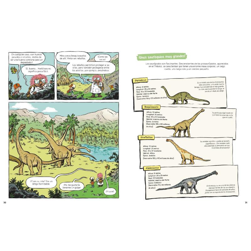 Descubre un montón de datos curiosos sobre los dinosaurios con este cómic de 80 páginas llenas de humor, y acompaña a Samuel, Einstein y la paleontóloga Teresa Von Humboldt por los bosques del Jurásico! Una colección de cómics para los más curiosos!
