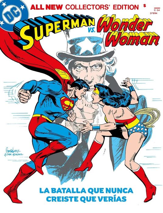 Un clásico inmortal a tamaño gigante, tal y como se publicó en 1977. ¡Superman contra Wonder Woman! ¡La batalla que jamás esperaste ver! En 1942, y en incidentes separados, tanto Superman como Wonder Woman escuchan un nombre: El Proyecto Manhattan. Superman confía en los agentes del gobierno que le aseguran que tal bomba jamás será usada. Wonder Woman, sin embargo, averigua más sobre el arma y decide que no debería estar en manos de nadie
