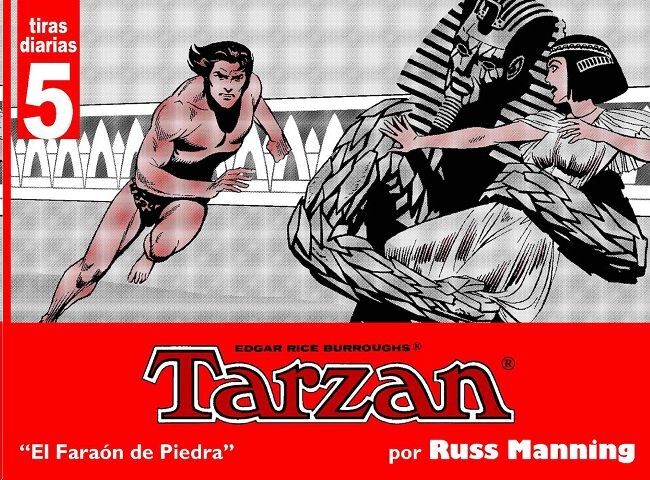 Tiras diarias de Russ Manning del 8 de octubre de 1970 al 26 de junio de 1971. "El trabajo de Manning en sindicación abarca desde 11-XII-1967 a 29 VII-1972 en la tira diaria, y desde 14-I-1968 a 24-6-1979 en las páginas dominicales a color. Las amplias posibilidades de narrativa y diagramación presentes en el comic book no existen en el enclaustrado medio diario. El profesionalismo y la brillantez de un autor maduro se adaptan al limitado espacio consiguiendo una confección y textura extraordinarias. En los cinco años en el que permanece en él, y a un ritmo de trabajo frenético, escribe y dibuja siente historias basadas en la cosmología burroughsiana, dilatando hasta su límite las posibilidades expresivas, a base de panorámicas, viñetas secuencia y profundidad de los encuadres que dotan de escenario convincente el universo fantástico de su autor literario. Cierra cuarenta y tres años de dailies de manera tan brillante como su trascendental inicio, dejando para el olvido treinta y ocho años de historias oscuras. Las historias de Tarzan realizadas por Russ Manning representan la mejor adaptación del mito selvático al cómic."