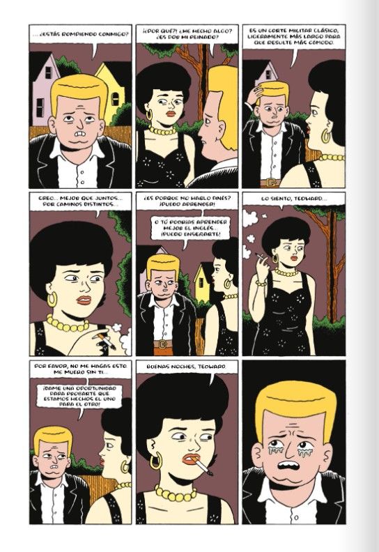Tedward lleva un corte de pelo galáctico y distinguido. Su estilo rutilante hace de él un hombre protagonista, céntrico y fundamental, en cierto modo el amante predilecto de América. Tedward es un triunfador. Un lover. Un incauto. Un primo y un infeliz. Y además está descuidando el huertecito de ruibarbo de su madre. Porque Tedward está a otra cosa. Enredado en citas románticas, participando en competiciones de papel maché, empleándose como recaudador en un negocio de televisores de alquiler o dejándose camelar por una franquicia de higienistas seminales. Una panoplia de situaciones más o menos prosaicas en un mundo violento, ridículo y lleno de tentaciones. Josh Pettinger creció en la isla de Wight, el pedrusco más enorme del Reino Unido y lugar famoso por su legendario festival de música, su abundancia en fósiles prehistóricos y su amplia oferta de instituciones penitenciarias. Pese a lo colorista de las posibilidades, pronto puso pies en polvorosa y sentó campamento en Estados Unidos, más precisamente en Filadelfi a, donde todavía vive. Heredero formal y espiritual de popes contemporáneos como Daniel Clowes o Simon Hanselmann, su nombre empezó a sonar fuerte en 2024, cuando las alucinadas historietas recogidas en su álbum Goiter (Ediciones La Cúpula) le merecieron formar parte de la selección ofi cial del festival de Angulema de ese año.