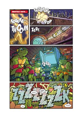 Descubre cuatro episodios perdidos de la producción televisiva de los años 80, que respetan el legado de la clásica serie de animación! Una inesperada sobrecarga de energía atrapa a los hermanos en un programa de entrenamiento virtual, donde se enfrentarán a versiones digitales de sus enemigos más peligrosos. Una misteriosa tecnología transforma a uno de los soldados de piedra de Krang en un amante del rock, pero ¿cuánto durará el cambio? Casey Jones obtiene superpoderes y no puede esperar para usarlos en su lucha contra el crimen, pero las Tortugas Ninja descubren que sus nuevas habilidades tienen un precio. ¿Podrán persuadir a Supercasey de renunciar a ellas? Por último, cuando Baxter Stockman infecta a Splinter con ratoneros microscópicos, Donatello tiene que encogerse y embarcarse en una misión interna para salvar a su senséi. El guionista Erik Burnham y el dibujante Tim Lattie capturan a la perfección la esencia de la serie animada clásica. Coge una porción de pizza, ponte cómodo y únete a los héroes de medio caparazón más intrépidos del mundo! Cowabunga!