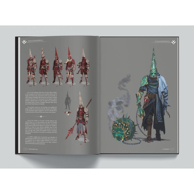 Game Press y The Game Kitchen presentan The Art of Blasphemous II, el libro de arte de la segunda entrega de la famosa saga de videojuegos de reconocido éxito internacional, Blasphemous. Producida por los mismos creadores de los juegos, el estudio sevillano The Game Kitchen, esta obra cuenta con un total de 288 páginas repletas de ilustraciones conceptuales en alta resolución, pixelart, bocetos, contenido inédito y los procesos creativos de Blasphemous II. Se incluye, además, contenido de las escenas animadas realizadas por Sunshine Animation Studios, así como un apartado dedicado al key art y una cuidada selección de fan art. Conoce a los personajes, armas, enemigos, bosses, escenarios y a todo el equipo artístico que ha participado en la creación del juego, y todo ello acompañado en gran medida por textos, en español e inglés, que explican la fuente de inspiración tomada por la propia Dirección Creativa de Blasphemous. Su espectacular formato de 22,8 × 30,5 cm, impresión en alta definición, papel de máxima calidad, tapa dura, acabados premium y una cuidada revisión, completan un majestuoso l