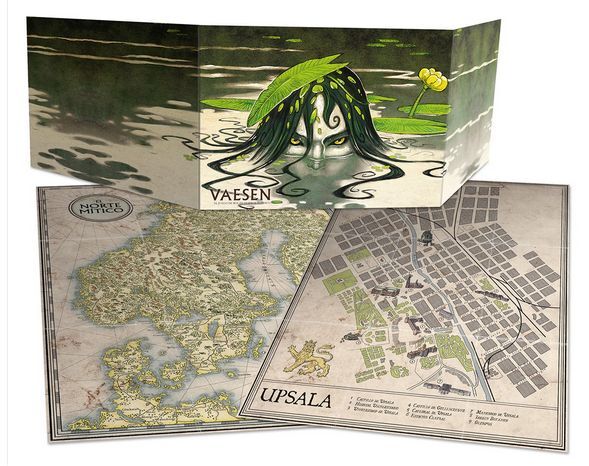 También se incluye un gran póster a doble cara con un precioso mapa del Norte Mítico en una cara y un plano de la ciudad de Upsala en la otra (tamaño: 558 x 432 mm).