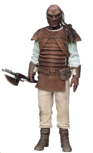 Revive la épica de Star Wars: Episodio VI – El Retorno del Jedi con esta figura a escala 1/6 de Klaatu, el leal guardia de Jabba el Hutt. Con una altura aproximada de 32 cm, presenta un nivel de detalle excepcional que captura su característico aspecto alienígena.La figura cuenta con ropa de tela cuidadosamente confeccionada, que aporta realismo a cada pliegue, además de múltip...