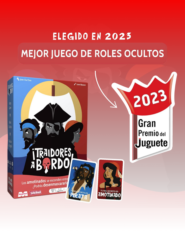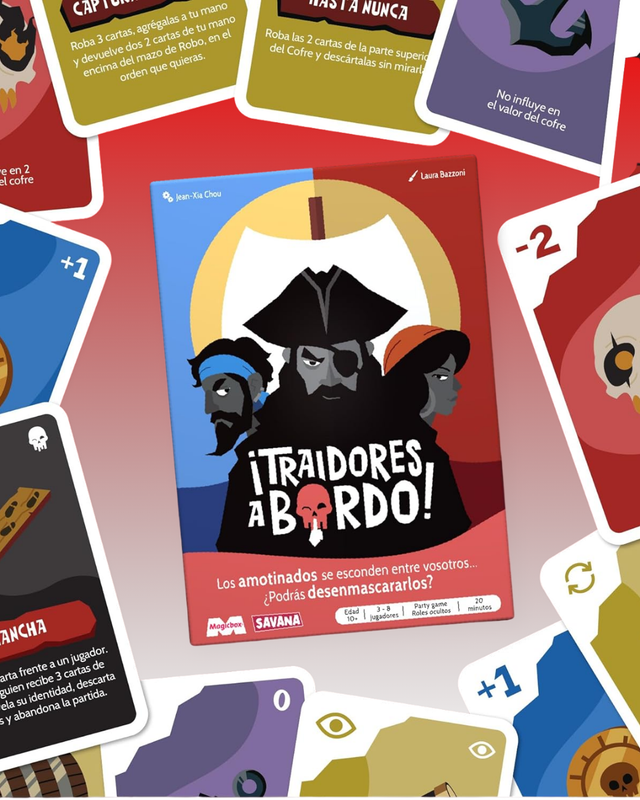 Este título de roles ocultos y deducción social te convierte en un verdadero bucanero. El objetivo es sencillo: si eres Pirata, debes llenar el cofre de botín con valores suficientes para alcanzar la victoria, mientras que si te toca Amotinado, tu misión es sabotearlo sin que nadie descubra tu verdadera lealtad. Con cartas de acción como “Plancha” o “Catalejo”, los turnos se convierten en una sucesión de engaños, acusaciones y carcajadas que te harán sentir parte de la tripulación. Diseñado para 3 a 8 jugadores, con partidas de entre 20 y 30 minutos y recomendado a partir de los 10 años, es perfecto para noches de juego rápidas y llenas de emoción.