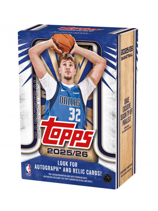 Celebra la nueva temporada NBA con Topps Basketball 2025/26, una colección que marca el regreso triunfal de la marca al baloncesto con un estilo clásico renovado. Cada sobre incluye 12 cartas repletas de estrellas actuales, promesas y leyendas del deporte, con ilustraciones vibrantes y diseños que evocan la esencia del coleccionismo deportivo.