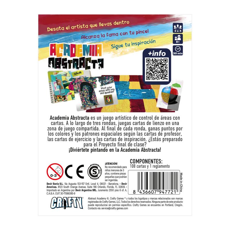 Academia Abstracta forma parte de la colección pocket de Devir, que se caracteriza por incluir grandes juegos en formato y coste reducido. Además de su portabilidad, que los hace unos grandes compañeros de viaje, son títulos versátiles al alcance de todos los públicos. ¿Preparado para impresionar a los profesores con tu visión única del arte?