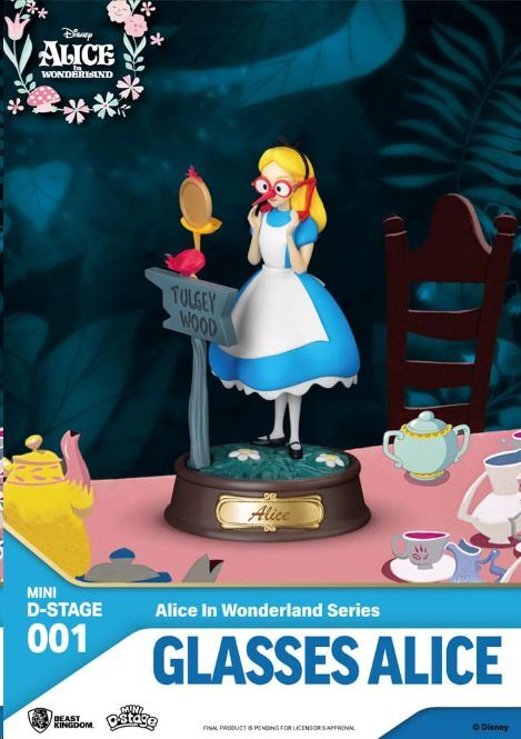 ALICIA EN EL PAÍS DE LAS MARAVILLAS ESTATUA PVC MINI DIORAMA GAFAS DE ESCENARIO ALICE 10 CM