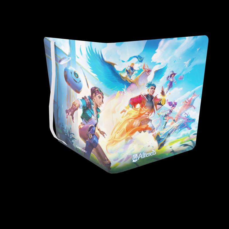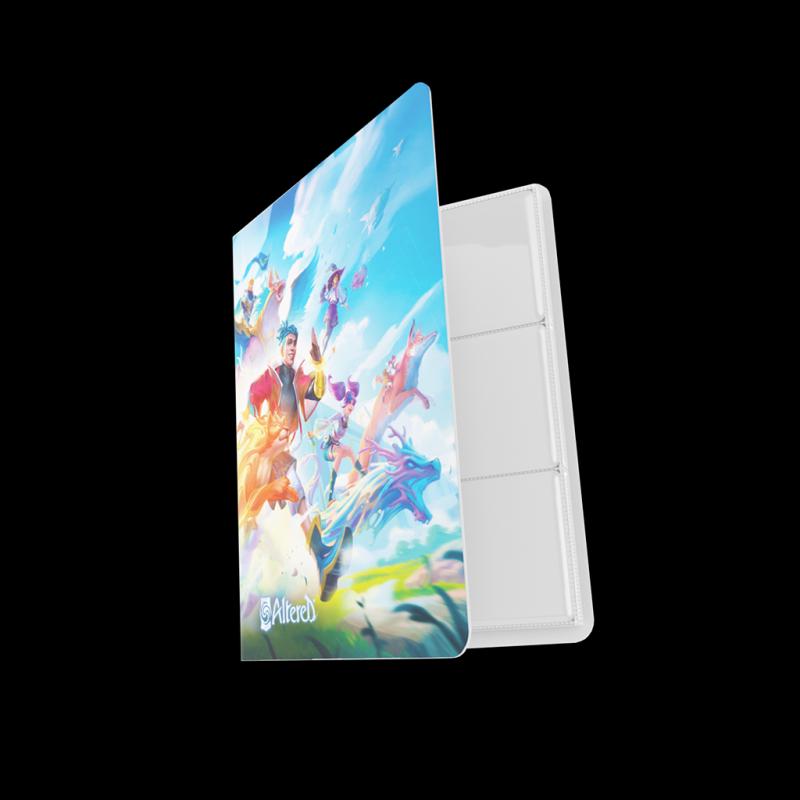 Perfecto para cartas de Altered® Incluye 20 páginas de carga lateral para guardar un total de 360 cartas en fundas* Tapas impresas con ilustraciones increíbles de gran calidad Páginas blancas para que tus cartas coloridas destaquen Banda elástica ancha con costuras reforzadas 18 bolsillos de carga lateral por página para que las cartas no se salgan Adecuado para cartas de tamaño estándar y japonés Optimizado para cartas con doble funda* Sin ácidos, sin PVC