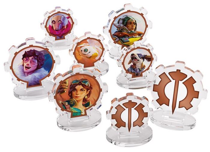 Conjunto de 8 fichas: 3 fichas de héroe 3 fichas de compañero 2 fichas genéricas (héroe o compañero) 6 conjuntos de fichas diferentes, uno para cada facción del juego Una silueta reconocible para cada facción Material acrílico de gran calidad, pensado para enriquecer la experiencia de juego Perfectas para todos los fans de Altered® Sin ácidos, sin PVC
