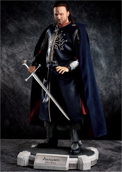 "Una nueva y detalladísima pieza de la colección ""Cinemaquette"" que recrea en esta ocasión al personaje de Aragorn, tal como aparece en la trilogía cinematográfica ""El Señor de los Anillos"". Acompañada de su correspondiente espada y vistiendo una cuidada ropa y cota de malla, esta estatua viene firmada y numerada y su producción se limita a 1000 unidades en todo el mundo."