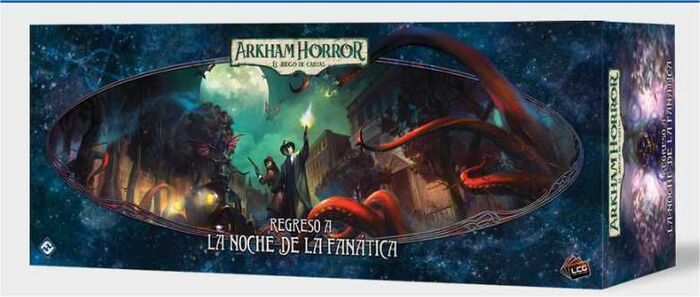 El Devorador de las Profundidades duerme en su cámara sobrenatural de muerte y putrefacción. Si despierta, su ira hará pedazos Arkham. Vuelve a la historia de la caja básica de Arkham Horror: El juego de cartas y experimenta la campaña La noche de la fanática con nuevas cartas de Escenario diseñadas para añadir nuevas sorpresas y desafíos. Esta caja especial también puede emplearse para guardar toda la campaña junto con las cartas separadoras de cada conjunto de encuentros de la campaña La noche de la fanática. Por último, esta expansión también contiene nuevas cartas de Jugador que aumentan las opciones de personalización del juego.