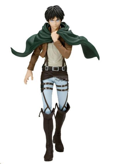 Esta impresionante figura de Eren Yeager de 28 cm forma parte de la línea Grandista, conocida por su gran tamaño y nivel de detalle. Captura al protagonista de Ataque a los Titanes con su icónico uniforme del Cuerpo de Exploración, incluyendo la capa verde con el emblema de las Alas de la Libertad ondeando al viento. Una pose desafiante y decidida que transmite toda la fuerza del personaje.