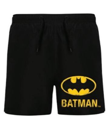 Luce un estilo imponente con este bañador negro inspirado en el icónico vigilante de la noche. Su diseño sobrio y elegante destaca con el legendario logo amarillo en el lateral, símbolo de justicia y misterio.