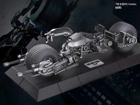 Réplica de Bat-Pod,la moto de Batman El Caballero Oscuro realizada en metal con todo detalle. Descansa sobre una sólida base, con medida aproximada de 27 cm. Basado en las películas de "Batman, el Caballero Oscuro"