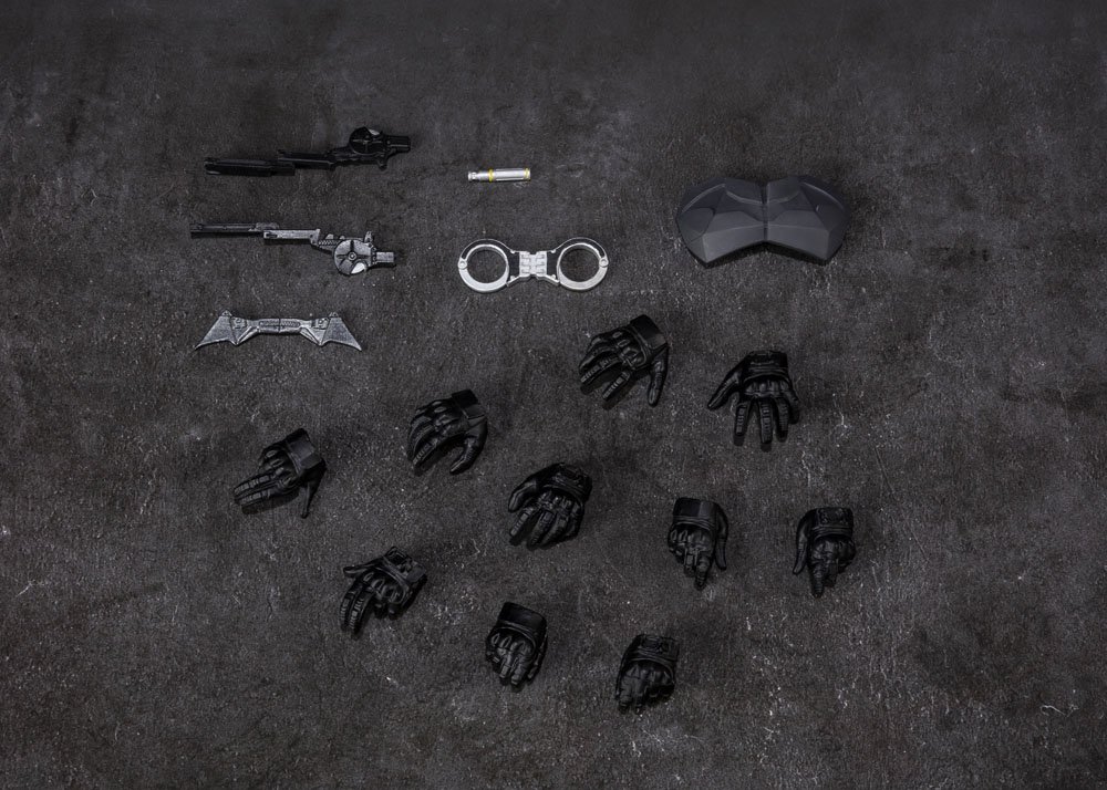 Tamashii Nations presenta la figura del popular Batman en su versión de la película The Batman dentro de la colección S.H. Figuarts. Con una altura aproximada de 15 cm, esta figura a escala 1/12 incluye una capa de tela con alambre para posar integrado y un retrato facial sin máscara de Bruce Wayne con la pintura negra alrededor de sus ojos como se ve en la película. Ambos rostros utilizan la tecnología de impresión digital de Tamashii Nations para capturar la imagen del actor con gran detalle. Los accesorios incluidos son el Bat Knife que se forma a partir del emblema de su cofre, las esposas, los lanzadores de garfios y el bolígrafo de adrenalina.