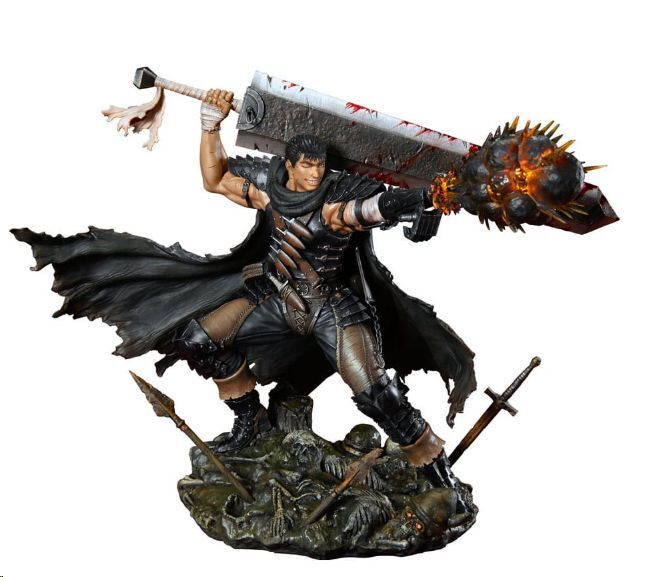 La escultura transmite toda la fuerza, furia y determinación de Guts, envuelto en su capa desgarrada por la guerra y con una expresión que anticipa el caos. La pose dinámica y la cuidada pintura realzan el carácter sombrío y legendario del personaje, convirtiéndola en una pieza esencial para cualquier fan de Kentaro Miura.