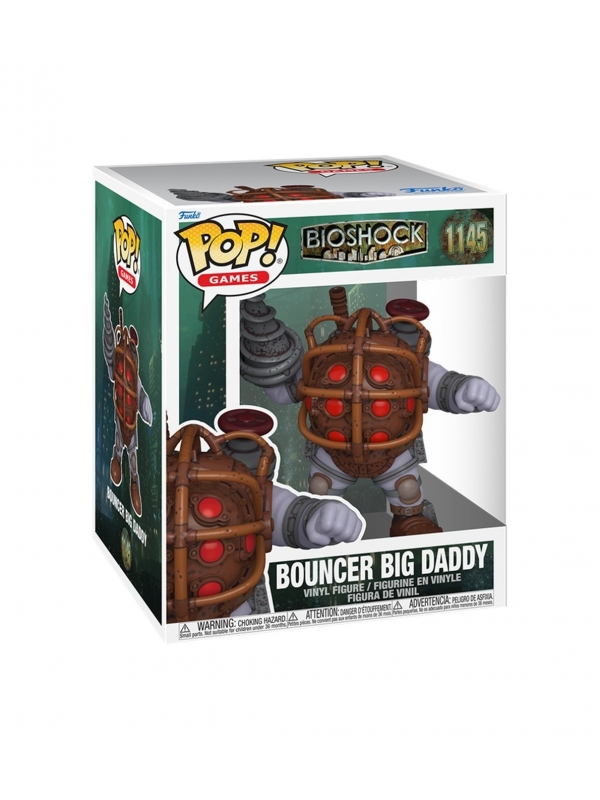 La figura Big Daddy Super Bouncer de BioShock en formato Funko POP representa a una de las criaturas más icónicas y reconocibles del videojuego, destacando por su imponente presencia y su diseño inconfundible.