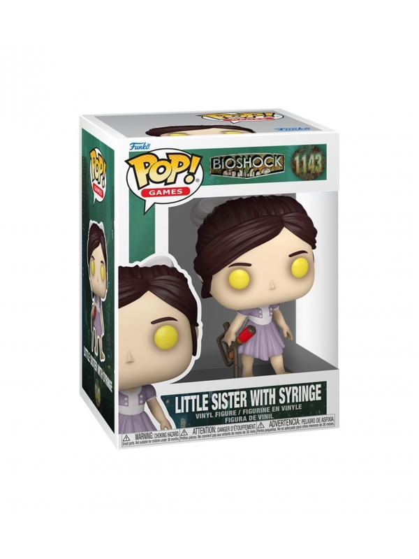 La figura Little Sister con jeringuilla de BioShock en formato Funko POP representa a uno de los elementos más icónicos y perturbadores del videojuego, capturando el contraste entre su apariencia inocente y el trasfondo oscuro que define el universo de Rapture.