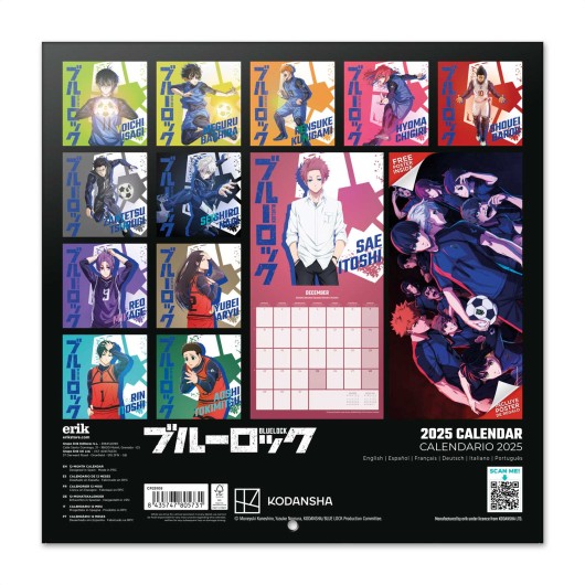 https://comicstores.es/producto/blue-lock-calendario-2025-30x30-cm_578113578113BLUE LOCK CALENDARIO 2025 30X30 CMDe Enero de 2025 a Diciembre 2025. Mide 29,5 x 29,5 cm, con encuadernación grapada. Contiene 12 imágenes y un póster en su interior. Incluye agujero de 5 mm para colgar en la pared. Las cubiertas son de papel de 250 g/m² estucado mate y laminado, el interior es de papel de 150 g/m² estucado mate. Idiomas: inglés, español, francés, italiano, alemán y portugués. Se presenta en un sobre de cartulina gráfica de 300 g/m² de 30 x 30 cm. https://comicstores.es/imagenes/8435747/843574780573.JPG8.7610.95202.19