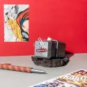 El soporte mantiene el bolígrafo siempre accesible, integrándolo de forma natural en el conjunto y reforzando su presencia visual. Es una pieza pensada para quienes disfrutan rodearse de artículos prácticos con identidad propia y referencias claras al universo Marvel.